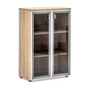 Система шкафов: топы и полки шкафов — ДСП толщиной 25 мм; каркас, основание, задняя стенка, двери деревянные — ДСП толщиной 18 мм, кромка — ABS толщиной 1 мм; стеклянные двери — стекло закаленное, тонированное в массе толщиной 4 мм; алюминиевый профиль;
