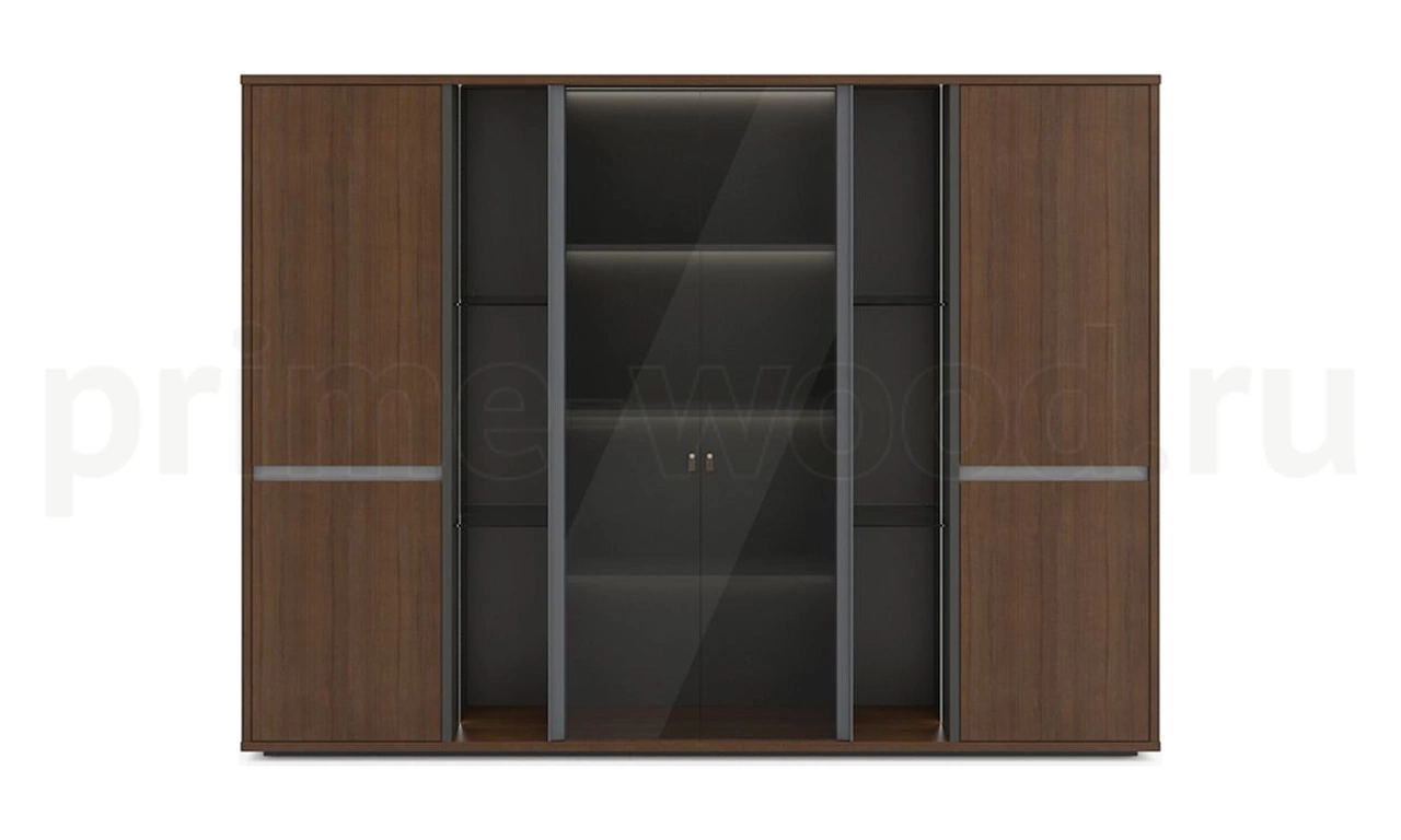 Высокий шкаф со стеклянными дверцами и алюминиевой рамой