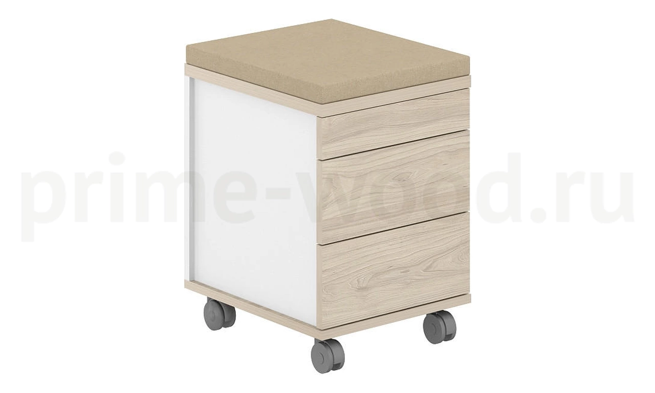 AG.273.WH.AR.AR / Тумба мобильная 2 ящ. ЛДСП+лот.ящ.+подушка / корпус: белый, топ/дно: ак.равелло, фасады: ак.равелло, подушка: бежевый