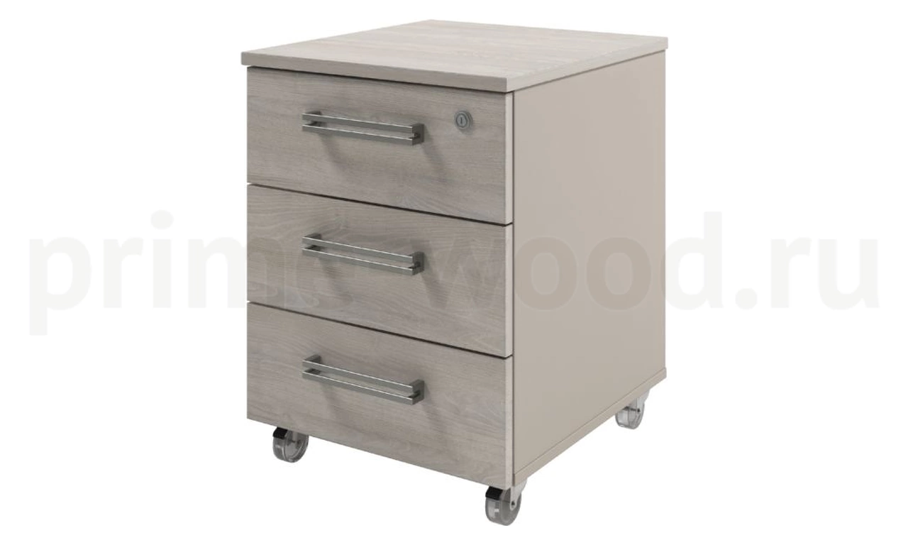 Тумба подкатная, 3 ящика, направляющие скрытого монтажа с доводчиками. Верхний ящик с замком